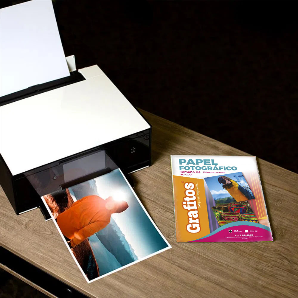 Nuestro papel fotográfico es perfecto para varios materiales y aplicaciones. Sirve para impresiones de fotos, gráficos, presentaciones, y más. Cada imagen que imprimes sale clara y con colores brillantes.