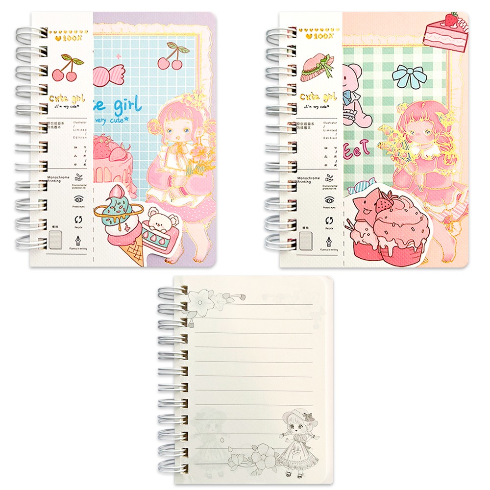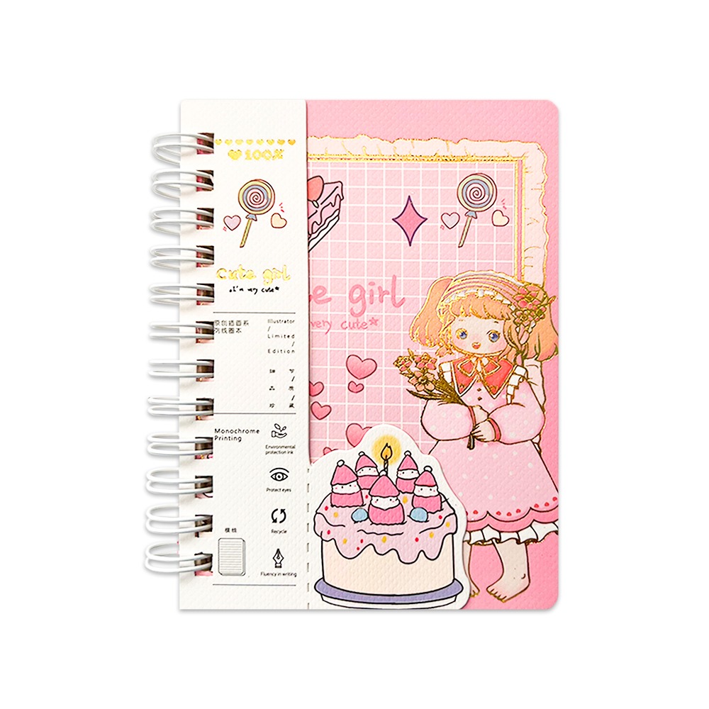 Diseño Kawaii de Muñecas: Sumérgete en la ternura de esta agenda con adorables muñecas y detalles escarchados que capturan la esencia del estilo kawaii. Cada vez que la abras, te sentirás inspirado y alegre.