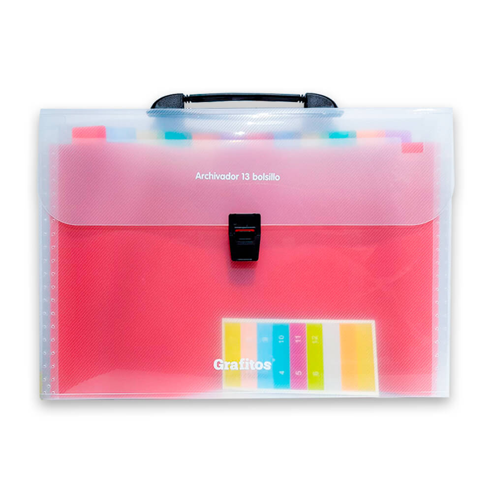 El Archivador 13 Bolsillos Oficio Grafitos es la solución perfecta para mantener tus documentos en formato oficio organizados y protegidos. Con 13 bolsillos amplios y coloridos, te permite clasificar tus papeles de manera eficiente y rápida, ideal para proyectos, facturas, informes y más.