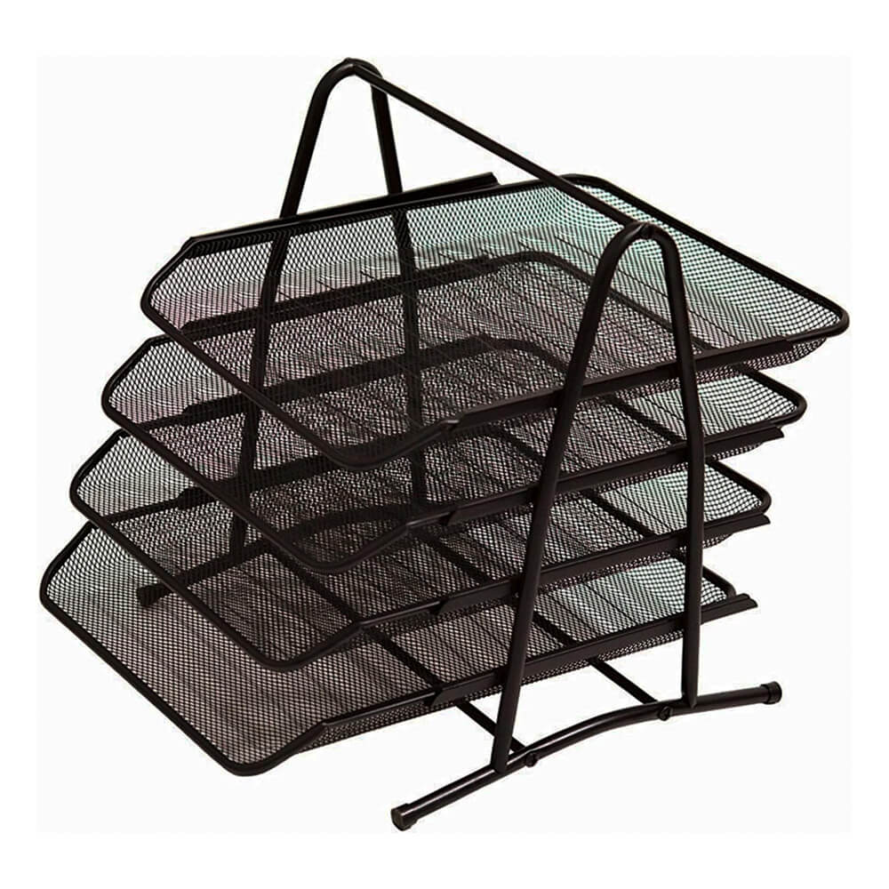 Su estructura de 4 niveles apilados permite aprovechar al máximo el espacio vertical, ideal para escritorios o áreas de trabajo con espacio limitado. Cada nivel cuenta con una base firme que soporta hojas, carpetas, cuadernos y otros materiales esenciales, ayudando a mantener todo ordenado y al alcance.