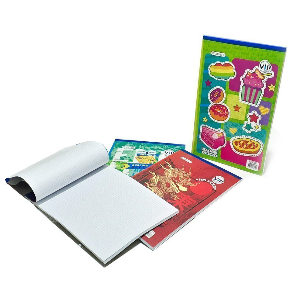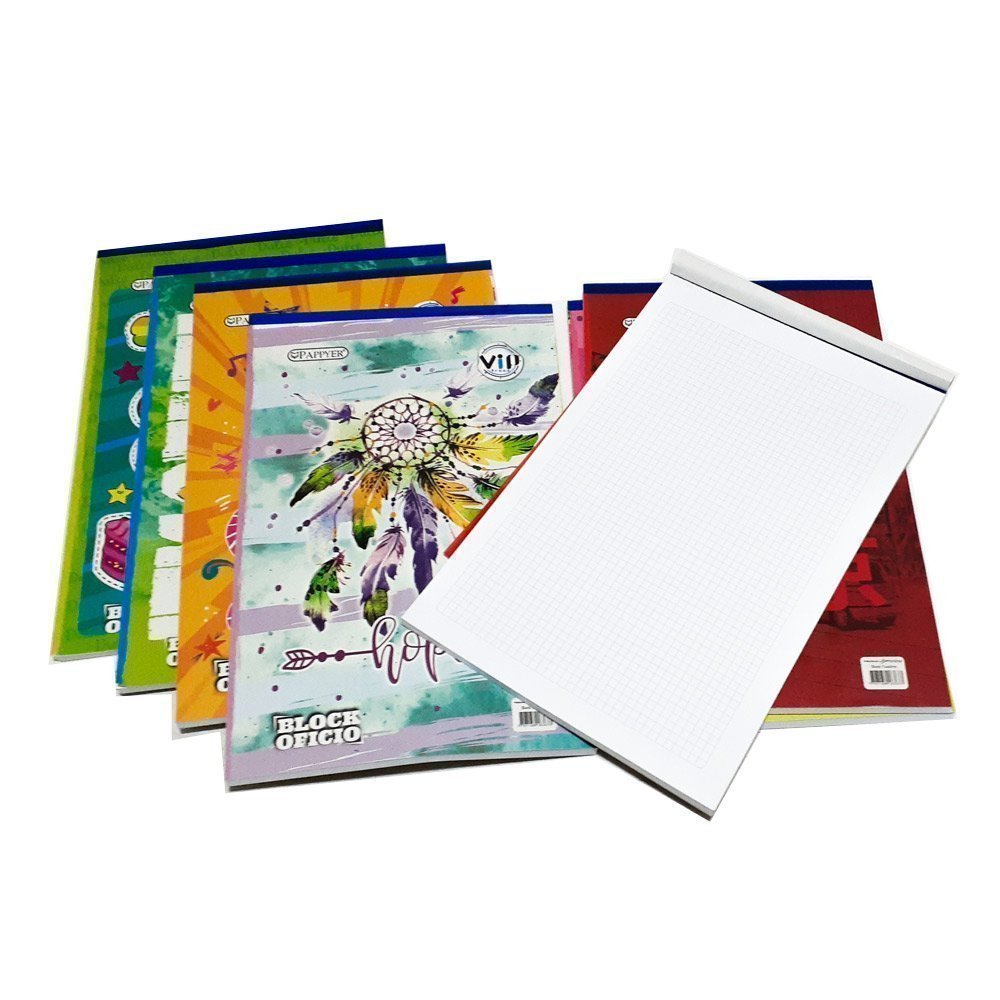 Descubre el Block económico Cuadriculado PAPPYER línea VIP para uso diario, ideal para la realización de trabajos escritos, en áreas matemáticas y contables principalmente, interlineado de 5 milímetros que ayudan en tareas en las que se realicen cuentas a mano, las caratulas están impresas a full color y en diferentes diseños, la pasta posterior es en cartón resistente y traen cinta de refuerzo en el lomo.