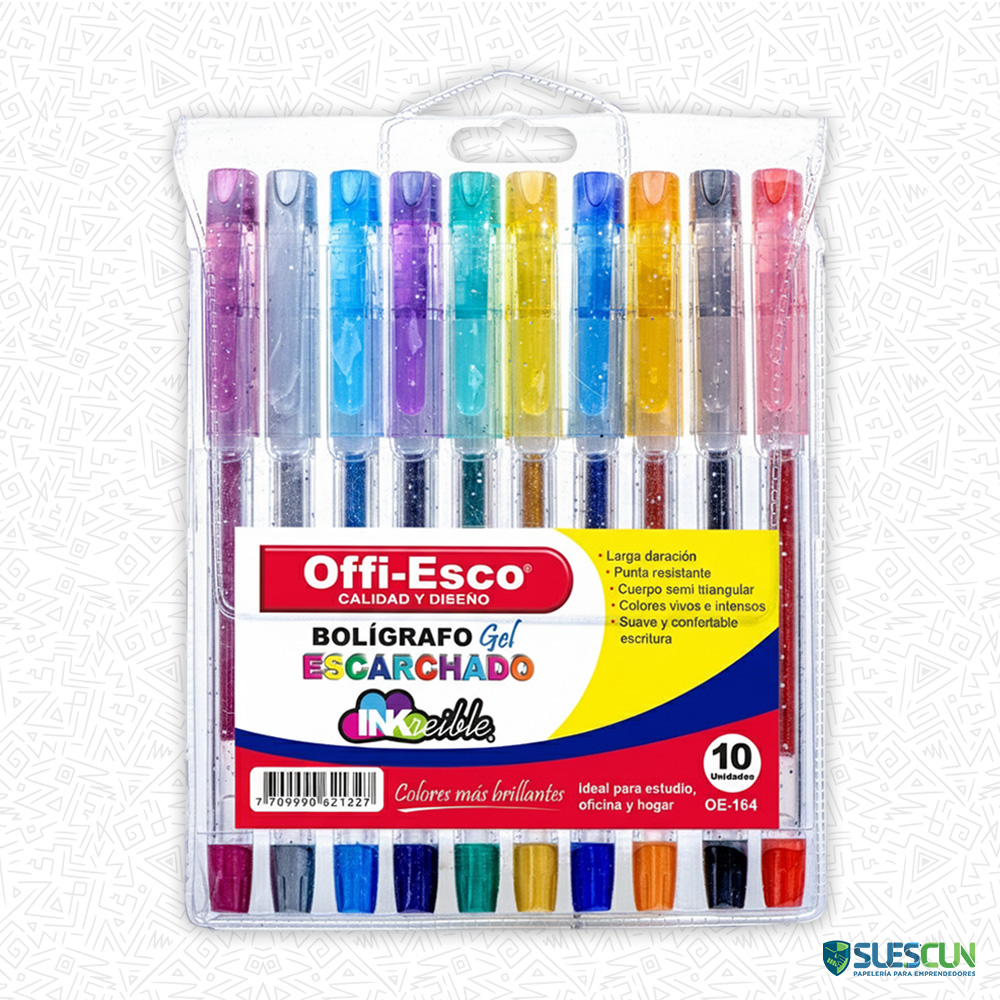 Los Bolígrafos Escarchados X10 Offi Esco OE-164 son la opción perfecta para quienes buscan combinar practicidad, estilo y creatividad en su escritura diaria.