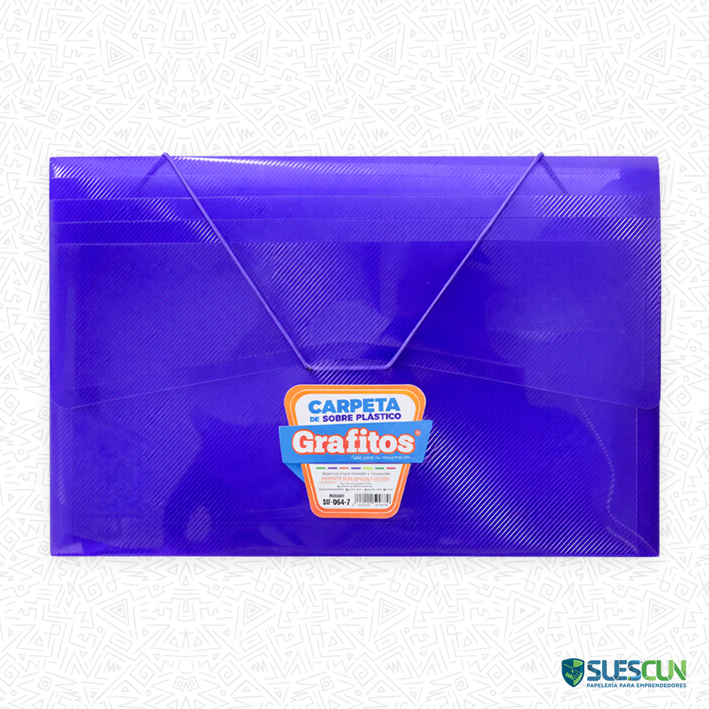 La Carpeta de Sobre Plástico SU-064 Morada es perfecta para mantener tus documentos ordenados, protegidos y bien presentados. Su diseño tipo sobre te ayuda a guardar papeles de forma segura, evitando que se doblen, se ensucien o se pierdan, ideal para colegio, oficina y uso diario.