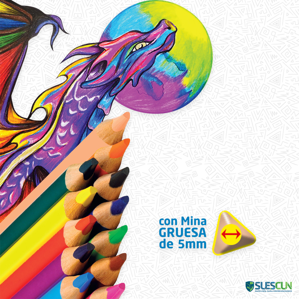 Estos lápices de color Jumbo son el material de arte ideal para iniciar la exploración creativa. El set Colores Jumbo OE-144 x12 Und proporciona colores intensos y la ergonomía necesaria para que los más pequeños disfruten del dibujo con facilidad y seguridad. Asegúrate de incluir los Colores Jumbo OE-144 x12 Und en tu lista de insumos escolares.