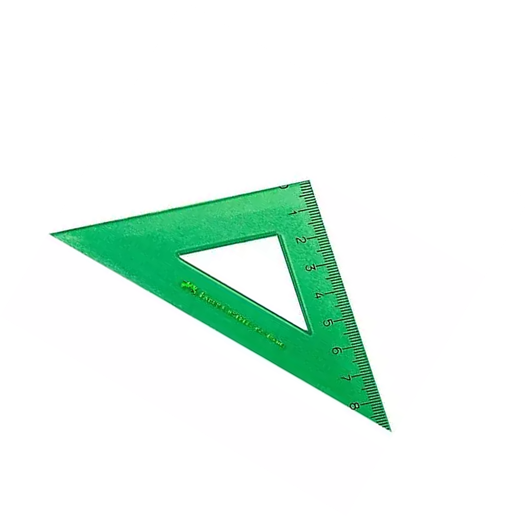 Escuadra de 45 X 12 grados translucida de FABER CASTELL ideal para trabajos escolares. Útil para hacer trazos, líneas, figuras y mucho mas. Regla de pasta de muy buena calidad resistente y duradera.