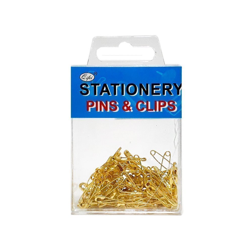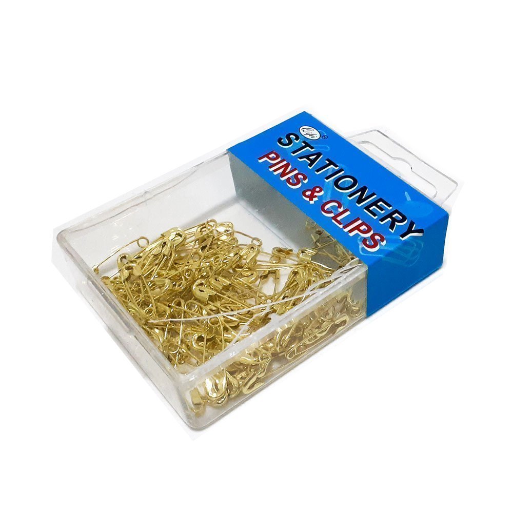 Estuche de pasta con ganchos de ropa o nodriza dorado para usos varios, arreglos de ropa entre otros.