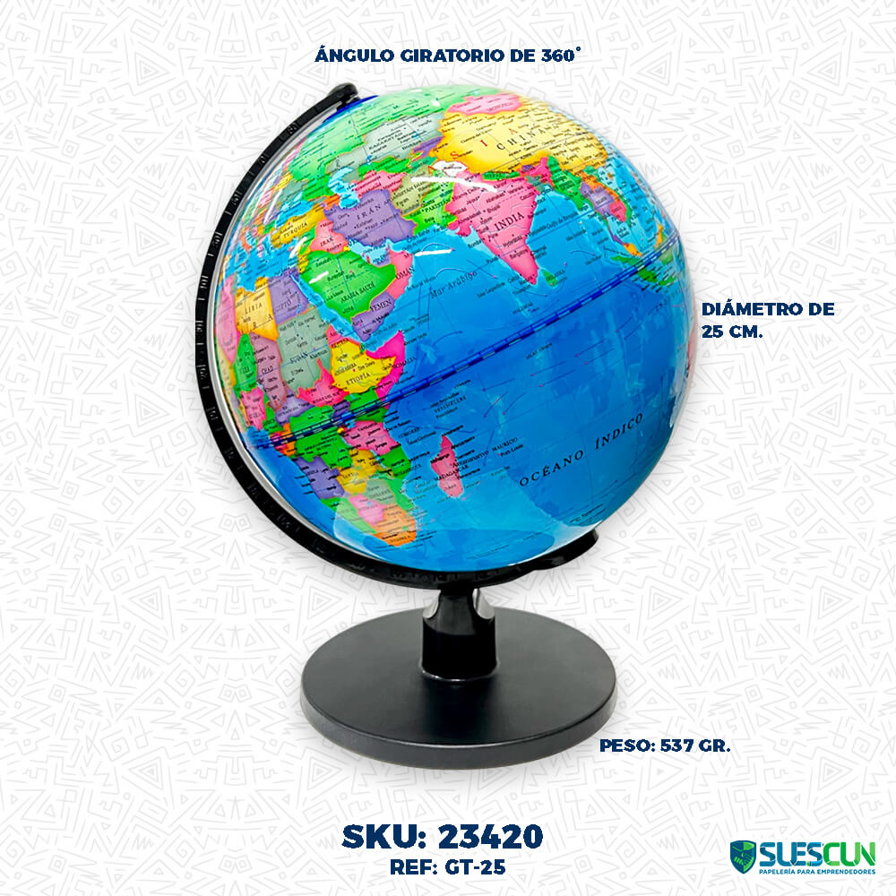 El Globo Terráqueo Grande es una pieza educativa y decorativa diseñada con un diámetro de 25 cm, fabricado en polipropileno de alta calidad que garantiza resistencia y durabilidad. Sus colores vivos y contrastantes resaltan la belleza de los continentes y océanos, ofreciendo una experiencia visual atractiva.