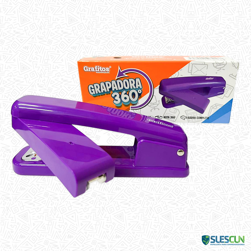 Grapadora Grafitos 360° SU-462: Grapadora Giratoria 360°, Ideal para Oficina, Colegio y Hogar, con Diseño Resistente y Grapado Preciso en Diferentes Ángulos
