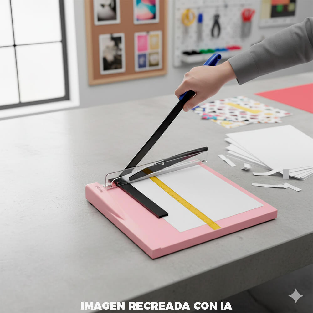 Perfecta para papel, fotografías, cartulinas y documentos, esta guillotina es una herramienta versátil que se adapta a entornos escolares, oficinas, talleres creativos y papelerías.