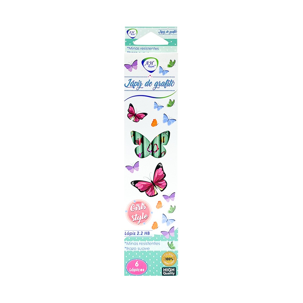 Explora el encanto y la elegancia con los lápices de la marca Ah Royal, diseñados exclusivamente para mujeres y niñas que aprecian un toque de estilo único en sus herramientas de escritura. Estos lápices de grafito con mina HB no solo ofrecen un rendimiento excepcional, sino que también presentan un diseño distintivo que incorpora adorables mariposas, añadiendo un toque de gracia y femineidad a cada trazo.