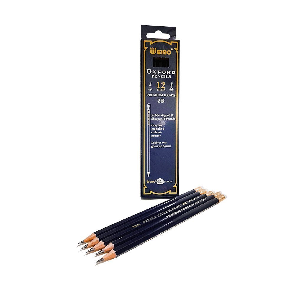 Lápiz 2B, marca WEIBO premium, extra largos para mayor durabilidad, lamina en aluminio para embobinar el borrador.