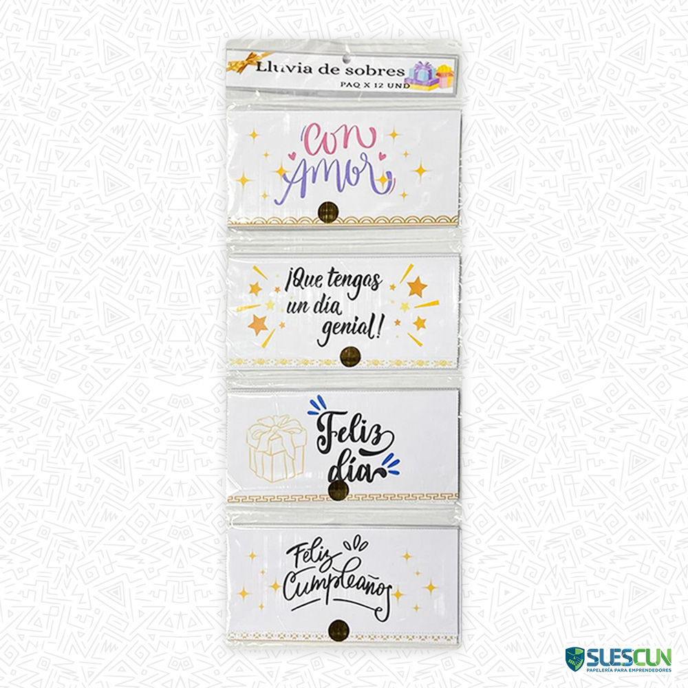 Asegure la mejor primera impresión en sus celebraciones con la Lluvia de Sobres Blancos x12 Und. Este kit de sobres es la elección ideal para entregar invitaciones formales, tarjetas de regalo o el tradicional obsequio monetario en eventos como bodas y comuniones. Su acabado blanco inmaculado y papel de alta calidad garantizan una presentación sobria y elegante.