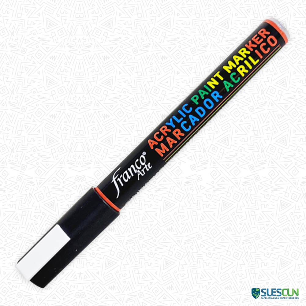 El Marcador Acrílico Negro Franco Arte es el marcador permanente para arte más versátil del mercado. Adhiere con excelencia a casi cualquier material, desde el lienzo y la madera hasta la cerámica y el vidrio. Es uno de los insumos para artistas indispensables para dar el toque final a tus proyectos de manualidades o bellas artes, ofreciendo siempre un acabado limpio y profesional.