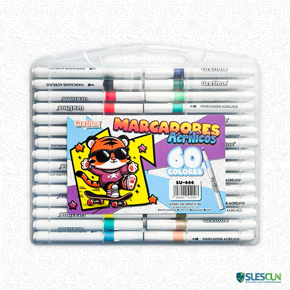 Los Marcadores Acrílicos X60 SU-444 son la opción ideal para artistas, estudiantes y creativos que buscan colores vibrantes y trazos precisos. Su tinta acrílica de alta calidad ofrece una excelente cobertura, secado rápido y gran adherencia sobre diversas superficies. Perfectos para proyectos artísticos, escolares, ilustraciones, lettering y manualidades, estos marcadores te permitirán expresar tu creatividad con acabados profesionales y duraderos.