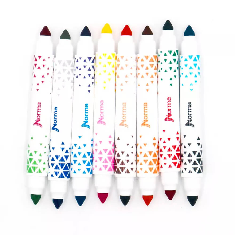 Los marcadores de doble punta Norma Etapa 1 son la herramienta perfecta para introducir a los más pequeños, mayores de 3 años, en el emocionante mundo del arte y la creatividad. Diseñados con especial atención a la seguridad y la estimulación de la imaginación, estos marcadores son ideales para los pequeños artistas en desarrollo. Cada marcador cuenta con dos puntas distintas en sus extremos, lo que les brinda a los niños la flexibilidad de realizar trazos finos y detallados con la punta cónica, así como colorear áreas más grandes y superficies con la otra punta. Además, la caja contiene una emocionante paleta de 16 colores brillantes, que despiertan la curiosidad y creatividad en los niños. Estos colores vibrantes permiten que sus creaciones cobren vida, animándolos a explorar y expresarse libremente.