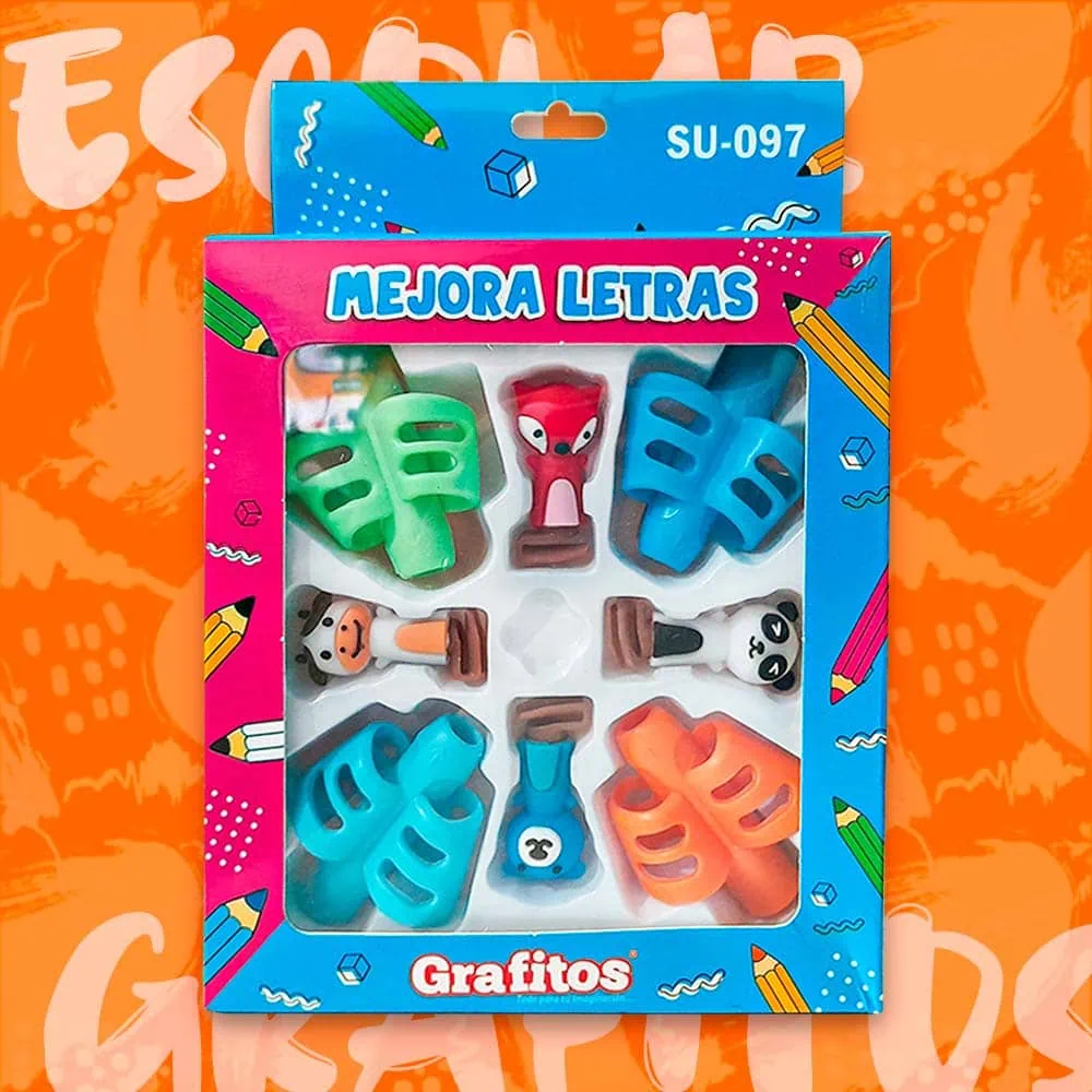 El set de mejora letras de 4 motivos es una herramienta ideal para niños en la etapa de aprendizaje de la escritura. Incluye 4 mejora letras diseñados para lápices y bolígrafos de 7 a 9 mm, con motivos coloridos que capturan la atención del niño. Hechos de materiales duraderos, garantizan un uso prolongado. Este set mejora la caligrafía al promover una mejor sujeción del lápiz, desarrollando una escritura más legible y uniforme. Además, fomenta la motricidad fina al enseñar a los niños a sostener el instrumento de escritura correctamente y escribir con precisión.
