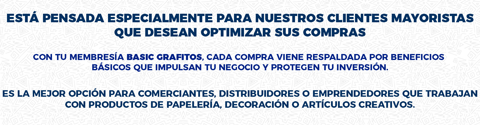 La Membresía Grafitos Basic es la alternativa perfecta para mayoristas que buscan optimizar sus compras y obtener beneficios reales en cada pedido. Diseñada especialmente para papelerías, distribuidores y emprendedores, esta membresía ofrece ventajas que impactan directamente en tu rentabilidad y operatividad diaria.