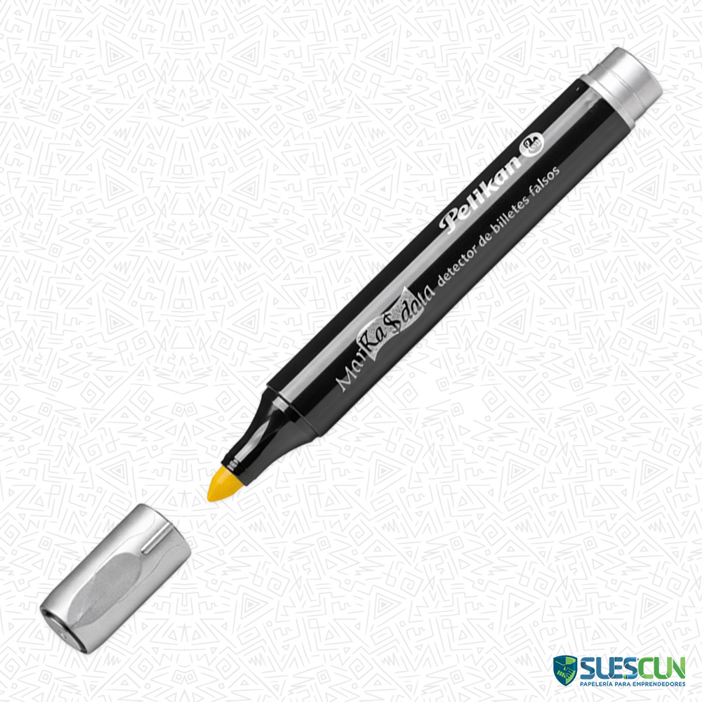 El Probador de Billetes Pelikan es una herramienta práctica y confiable para detectar billetes falsos de forma rápida y sencilla . Diseñado como un marcador especial, permite verificar la autenticidad del papel moneda con solo realizar un trazo sobre el billete.