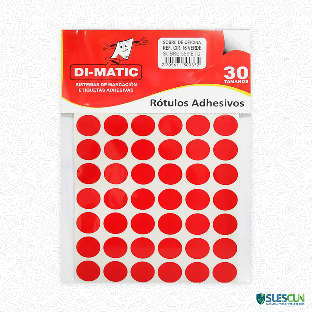 Los Rótulos Adhesivos Circulares Rojos son ideales para destacar información urgente, clasificar documentos o señalizar elementos importantes dentro de oficinas, colegios, bodegas y espacios de trabajo. Su color rojo intenso asegura una visibilidad inmediata, permitiendo identificar prioridades, advertencias, categorías o estados específicos de forma rápida y organizada. Se adhieren con firmeza a distintas superficies, lo que los convierte en una herramienta práctica y versátil para el día a día.