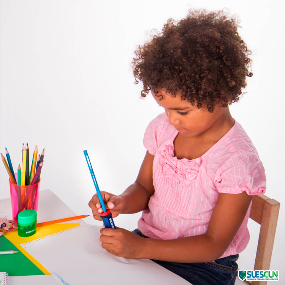 Cuenta con una cuchilla de acero inoxidable que asegura un afilado limpio y parejo, evitando que la mina se rompa. Ideal para lápices de grafito y de color, ofrece un uso cómodo y eficiente en todo momento.