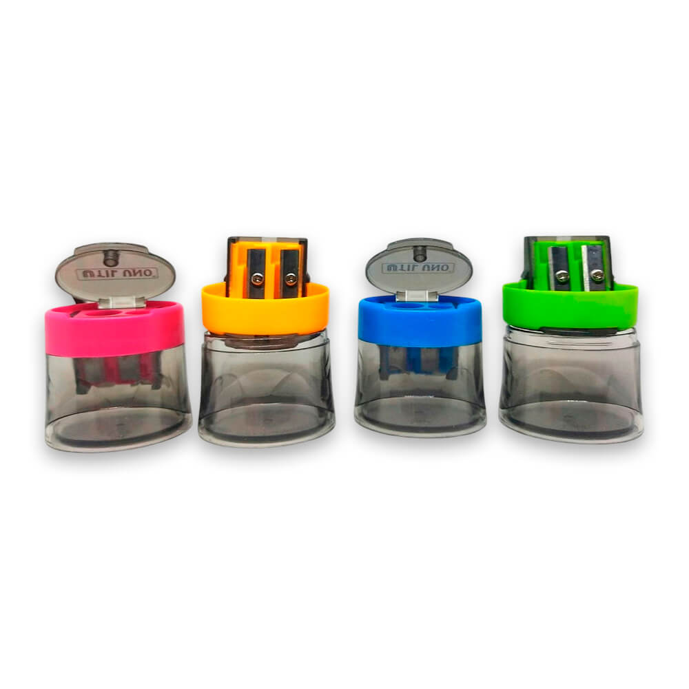 Disponible en colores vibrantes como rosa, amarillo, azul y verde, este sacapuntas combina estilo y practicidad, convirtiéndolo en una excelente opción para estudiantes, artistas y profesionales.