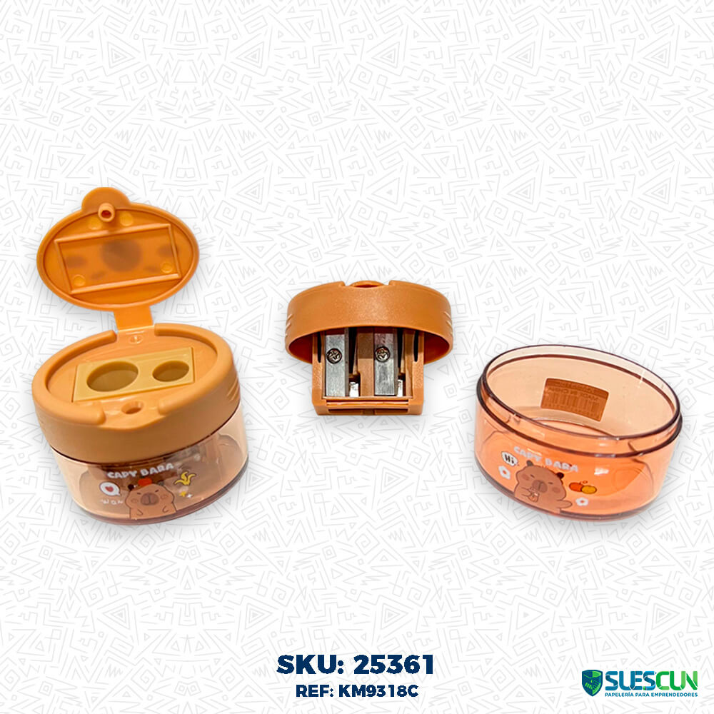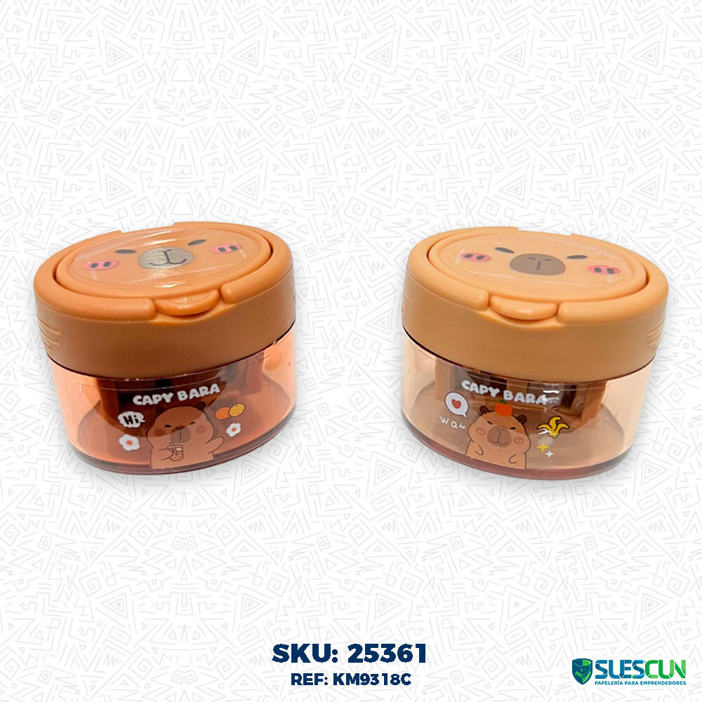 Doble Hueco y Depósito Integrado del Sacapunta Kawaii Capibara con Depósito