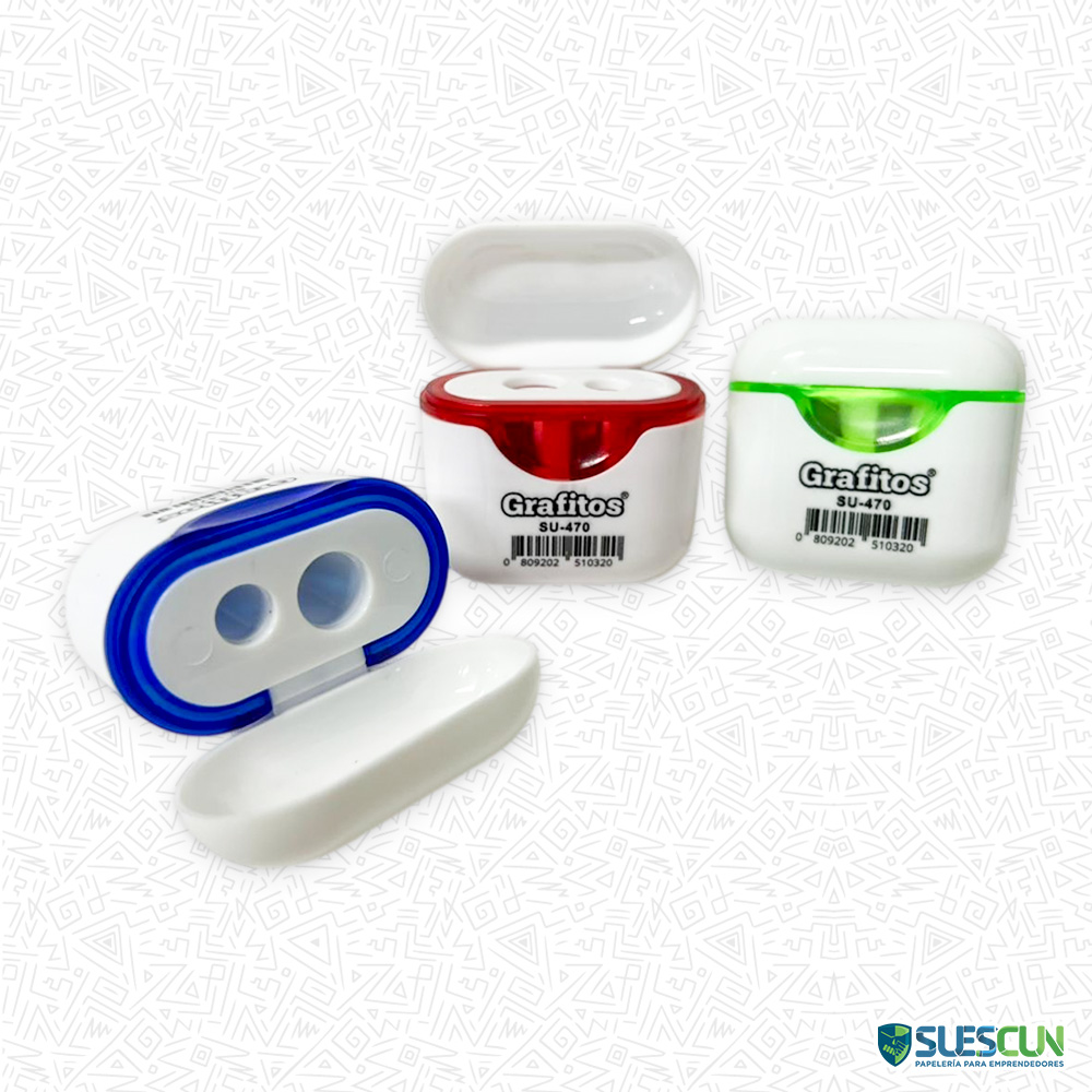 Sacapuntas de Audífonos Doble SU-470: Afilador con Tapa Tipo Estuche, Doble Entrada y Diseño Moderno en Colores Surtidos para Colegio y Oficina