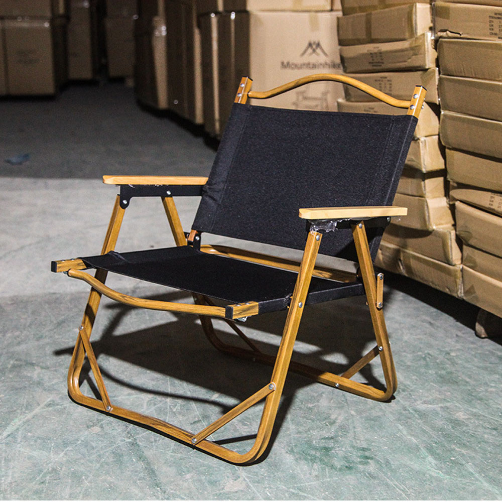 Silla plegable portátil de aluminio y madera de grano, asiento ligero con respaldo y bolsa de transporte para mochilero,