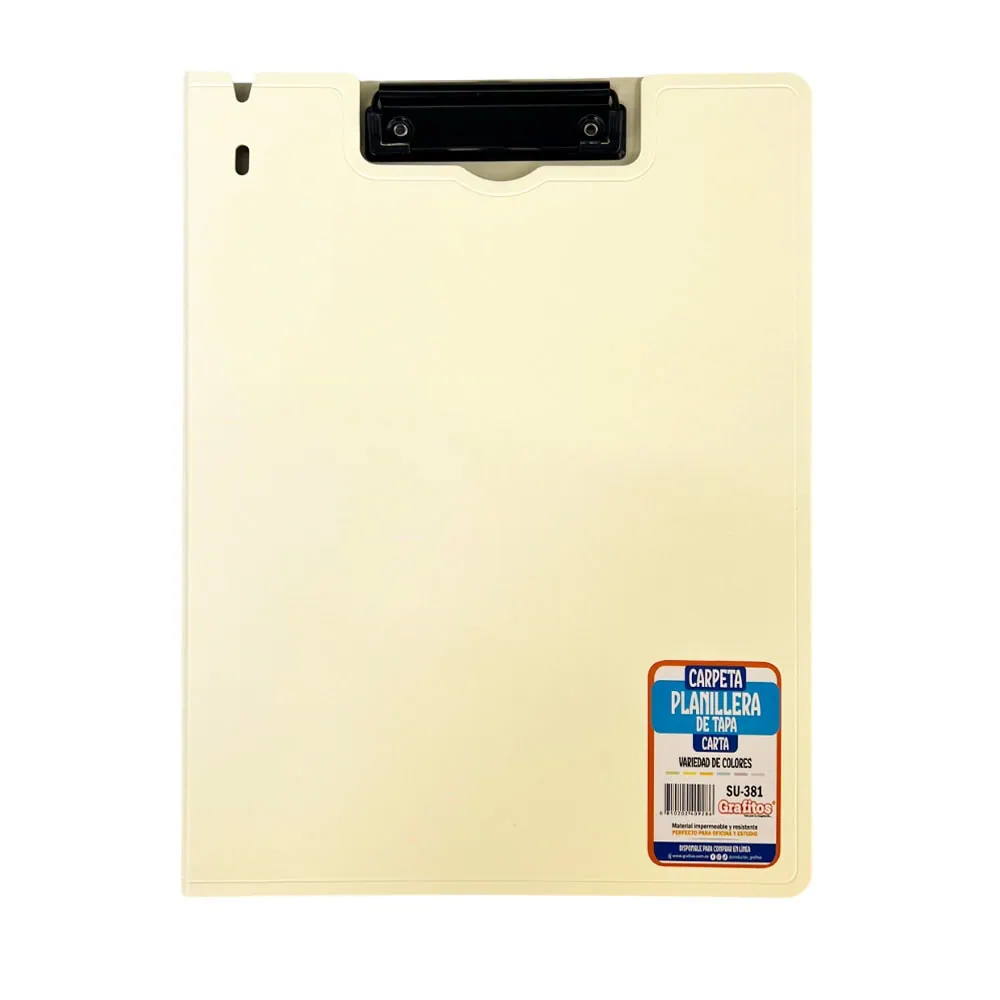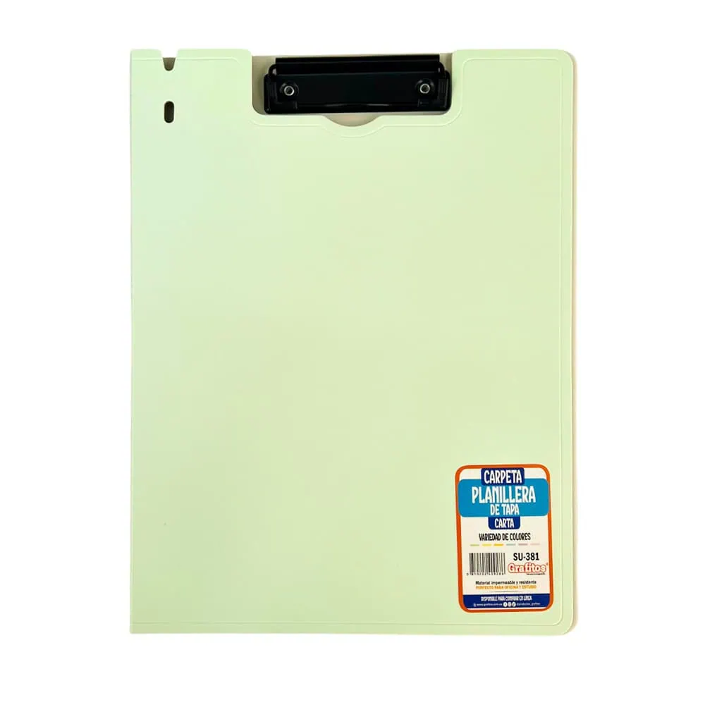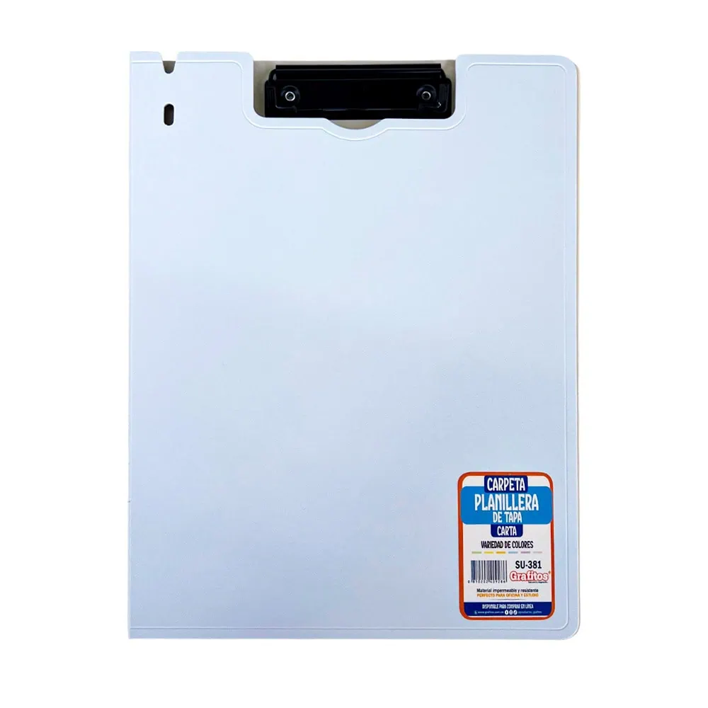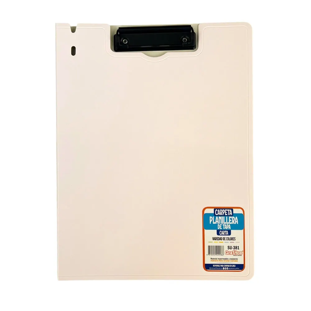 La Tabla Planillera SU-381/ BG6601A/531A Tapa Con Gancho Presión es la herramienta perfecta para mantener tus documentos seguros y bien organizados. Con su diseño tamaño carta, ofrece espacio ideal para manejar papeles y documentos importantes sin complicaciones.