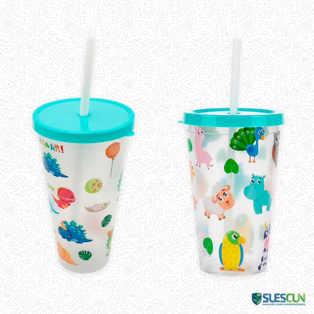 Los Vasos Plásticos Motivos Kawaii son ideales para niños y amantes de los diseños llamativos y coloridos. Estos vasos cuentan con tapa y pitillo, lo que los hace prácticos y seguros para el uso diario. Su acabado translúcido permite apreciar sus diseños estampados, disponibles en motivos kawaii como animalitos, dinosaurios y también diseños de fútbol, tal como se muestra en las imágenes.