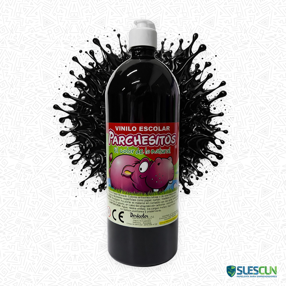 Vinilo Parchesitos Negro 1000cc: Pintura Vinílica de Alta Cobertura para Manualidades, Colegio y Decoración