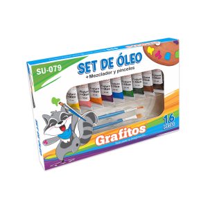12 pinturas de oleo acompañados con un mezclador y tres pinceles.